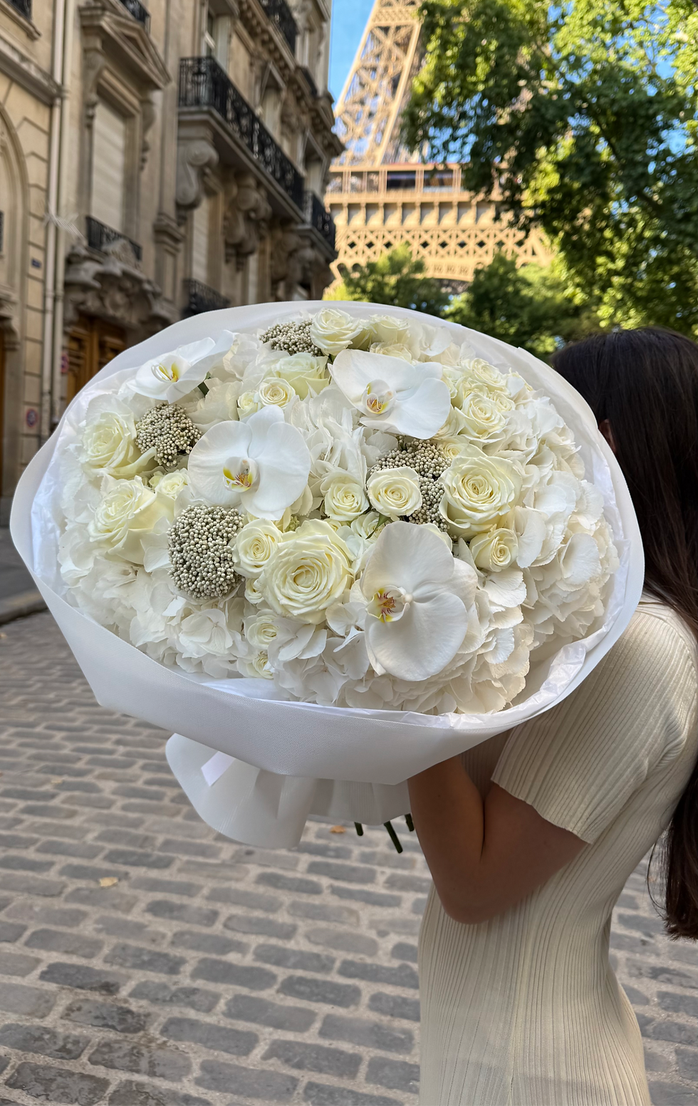 Introducing our stunning Chic bouquet, a perfect arrangement of delicate rose and blue hydrangeas, along with an assortment of assorted roses and peonies. This sophisticated and elegant bouquet is the ideal way to show your love and appreciation. The soft, pastel hues of the flowers exude femininity and grace, making it a perfect gift for a loved one or friend. Each bloom has been hand-selected for its beauty and freshness, ensuring a long-lasting and beautiful display. Bring a touch of chic beauty into your home with our exquisite Chic bouquet.